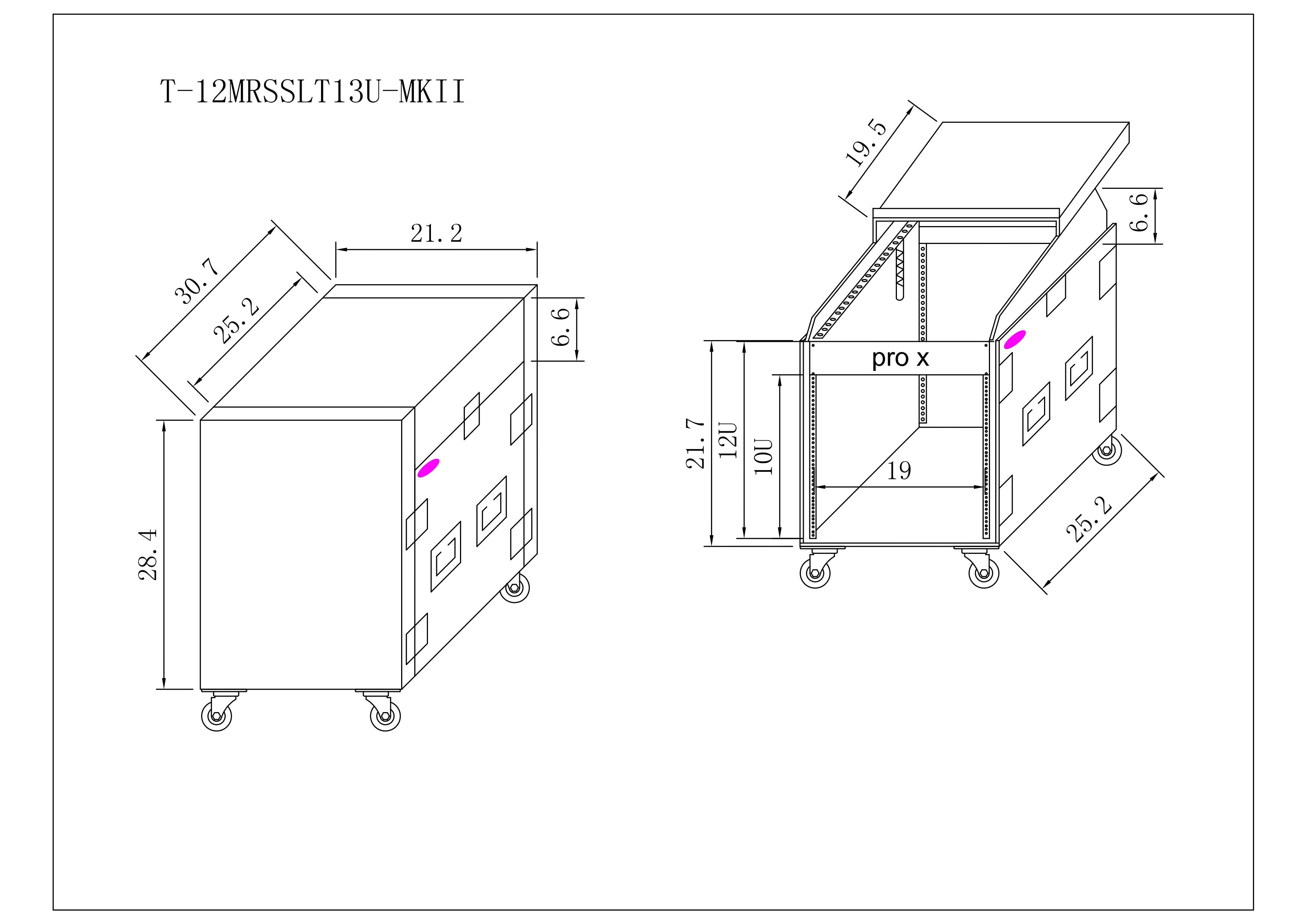ATA Flight Style Mixing Console Case 2x side by side 12U Shock Mount Rack and 2x Side Tables